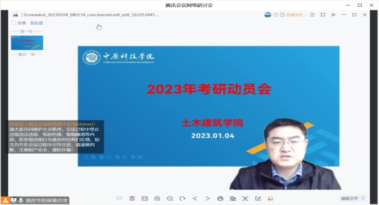 2023年1月4日,新年伊始,我院召开2023年的第一个工作会议---考研动员会,对我院学生进行考研动员。我院多年来一直重视学生考研工作,2022年我院本科学生研究生录取率为9.8%,全校排名第一。本次会议的召开旨在对考研工作早布署、早准备、早动员,督促学生珍惜寒假时间,制定学习计划,努力学习,立志考研。会议由我院党总支书记郭彦华主持,我院院领导、教研室主任、有关老师、及意向考研的学生参加了本次会议。