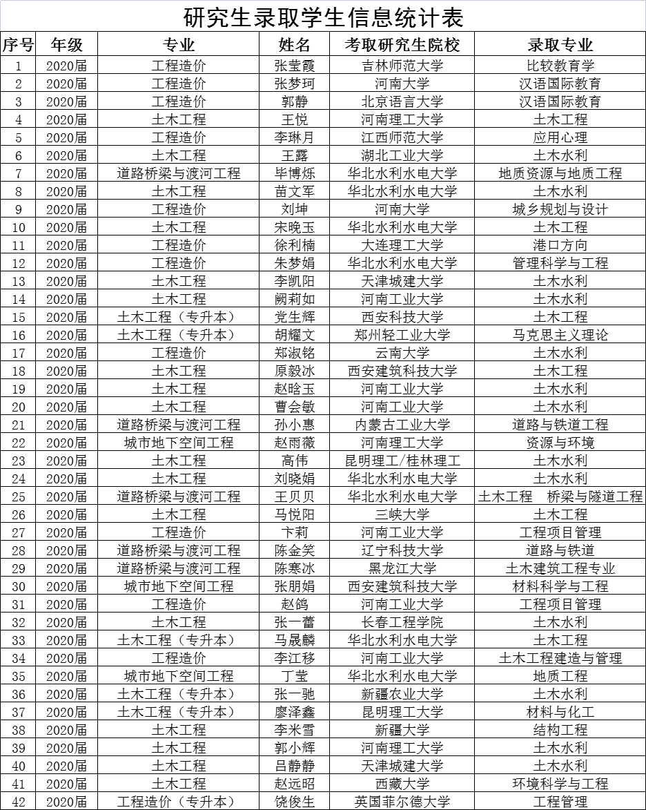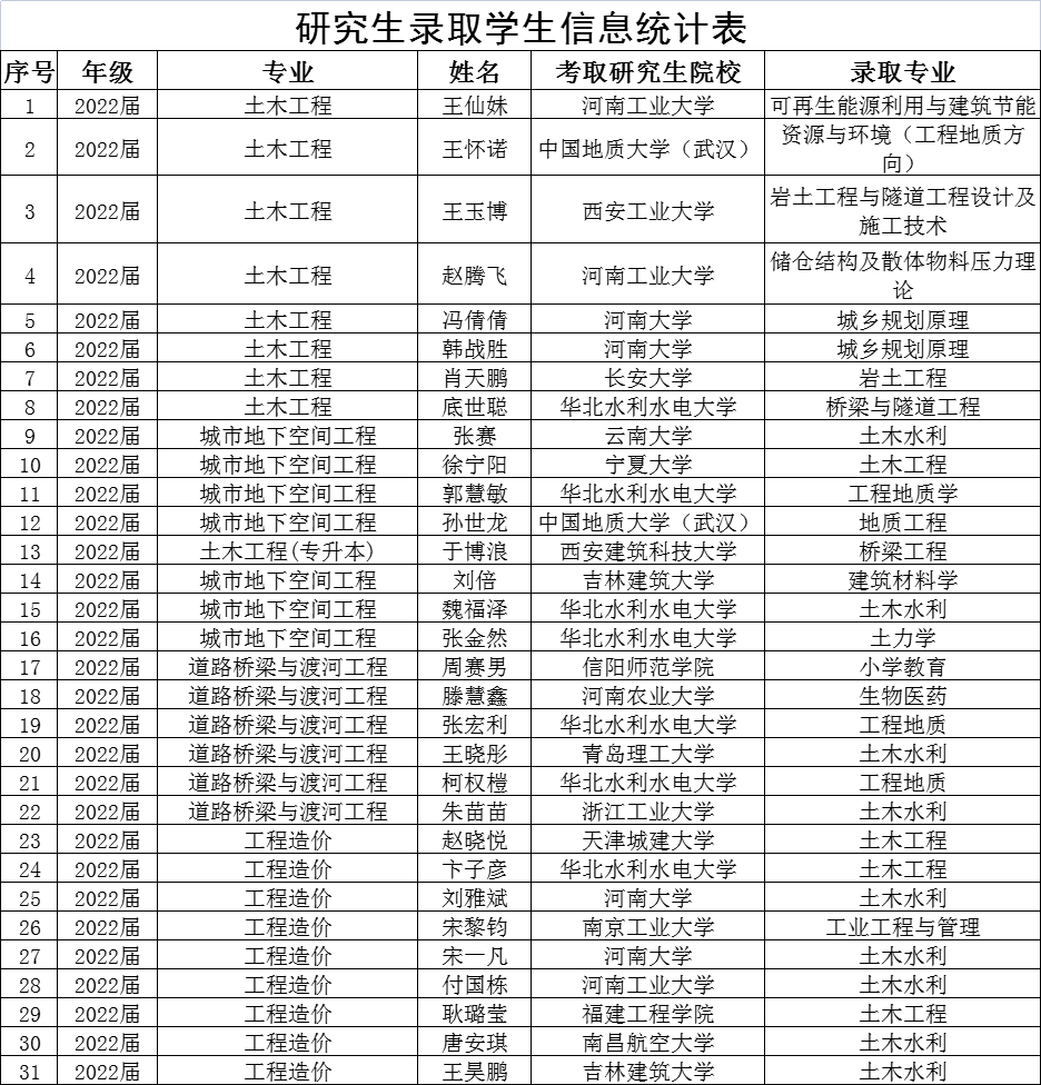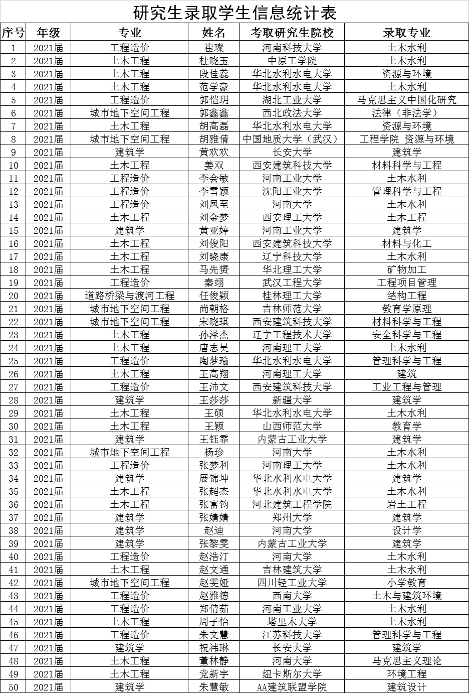 土木建筑学院2024届毕业生录取研究生光荣榜