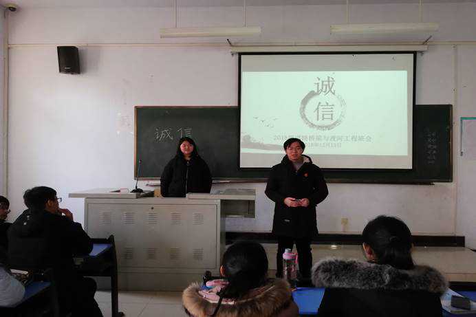 2019年1月2日~1月6日土木建筑工程学院各班召开了“诚信”主题班会。各班班委、同学都积极准备班会。辅导员也到场参加会议。