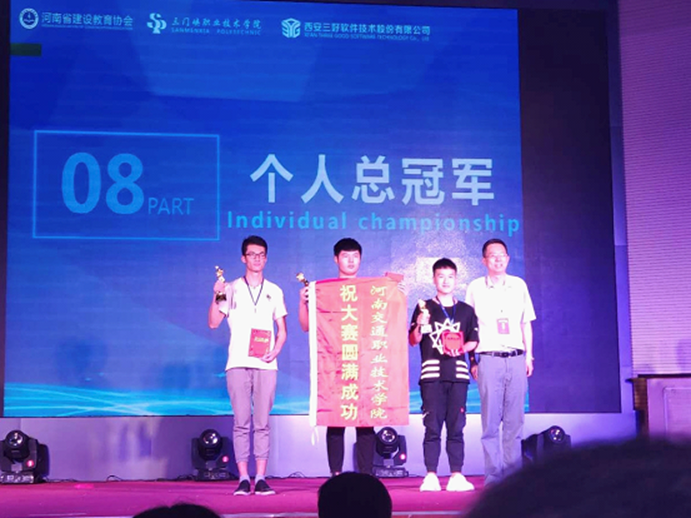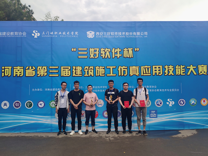 6月14-15日,由河南省建设教育协会主办的省级“河南省第三届建筑施工仿真应用技能大赛”在三门峡职业技术学院开赛。经过两天紧张激烈的角逐,来自我校土木建筑工程学院的代表队(王建豪、彭凡、张浩然、黄耀辉、贾志博、李东伦)获得了本科组“团体总冠军”、“个人总冠军”,获得双冠王,指导老师也获得了“最佳指导奖”。