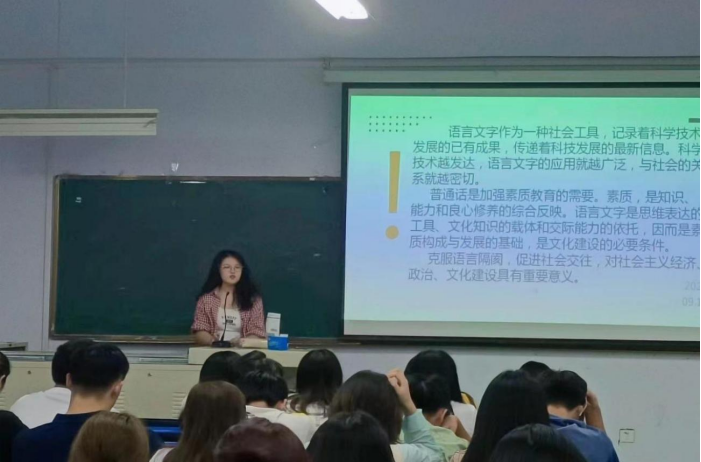 开展各种普及普通话活动,提高学生语言文字水平,各辅导员老师组织学生举办主题班会,将推普周活动与传承弘扬中华优秀传统文化结合起来,同时加大“互联网新媒体”在推普工作的应用,以此来激发全体学生自觉使用普通话的意识,营造浓厚推普周活动氛围,使学生积极参与到推普宣传周活动中来。