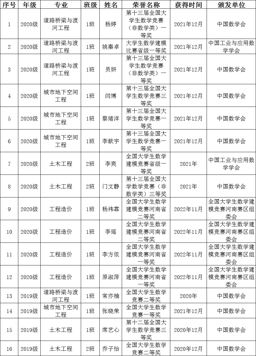 全国大学生数学类获奖学生名单