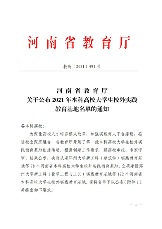 中建五局校外实践教育基地项目- 河南省新工科(土木工程)大学生校外实践教育基地、省级 |