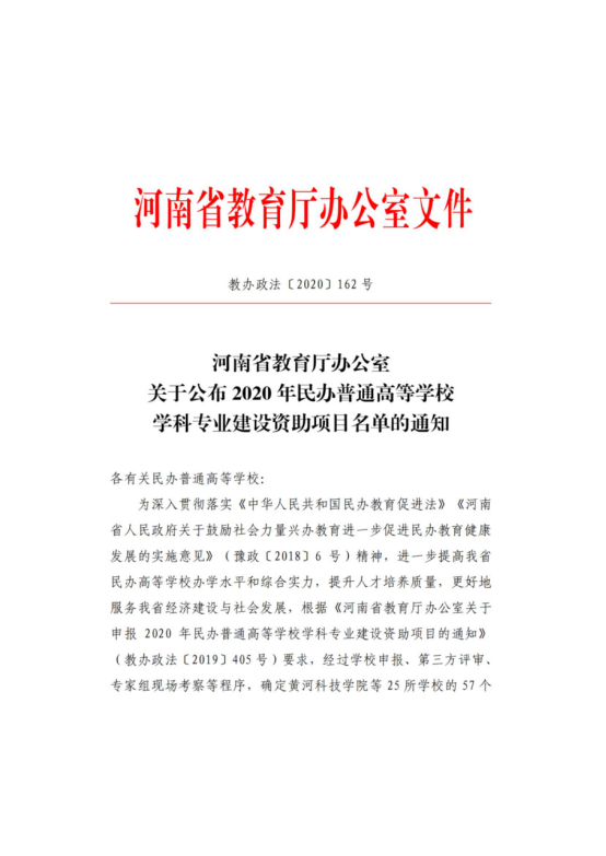 2020年河南省民办本科学科专业资助项目(土木工程专业)