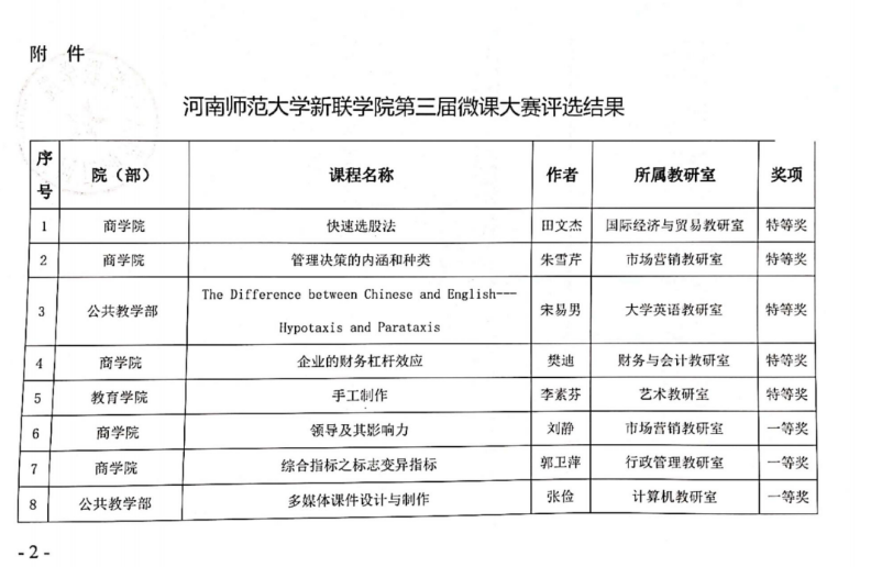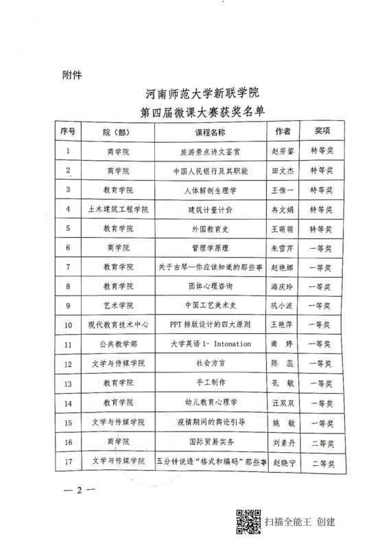 河南师范大学第四届微课大赛特等奖《建筑计量计价》(冉文娟)、校级 |