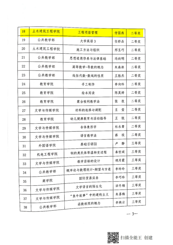 河南师范大学第四届微课大赛二等奖 《工程项目管理》(付国燕)、校级 |