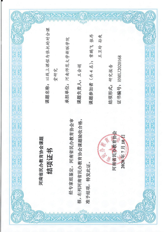 《以线上课程为依托的对分课程研究》,河南省民办教学协会课题