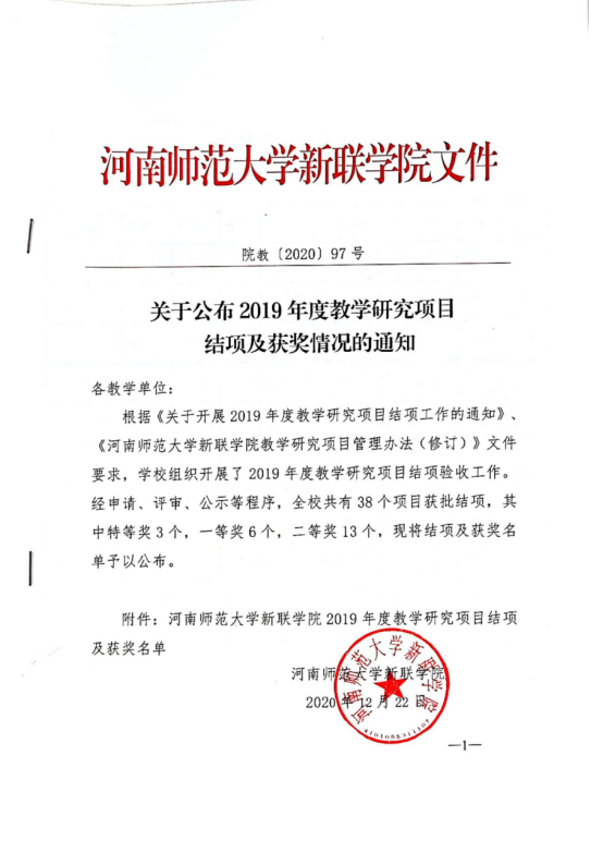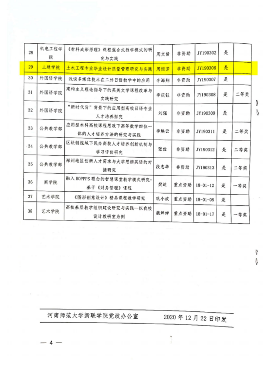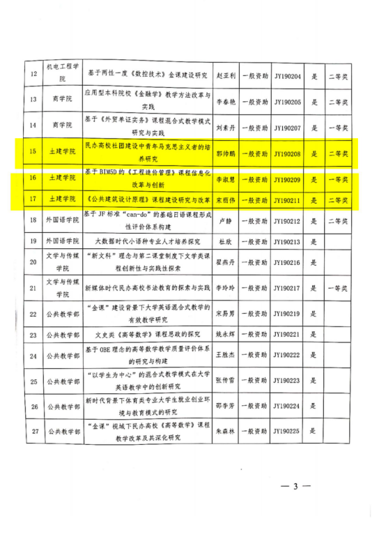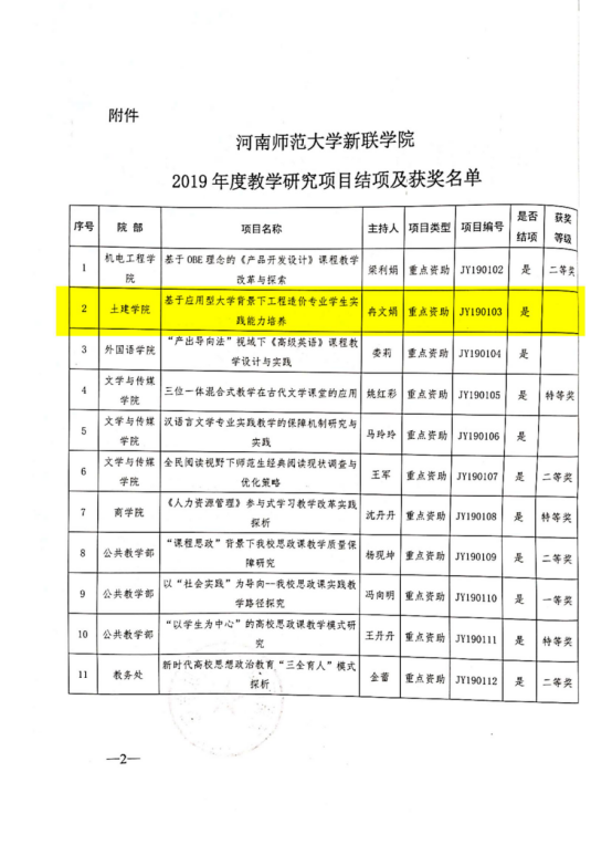 2019年校级教学改革研究项目,学院《基于BIM5D的《工程造价管理》课程信息化改革与创新》等5个项目结项,并获得一等奖一项、二等奖2项