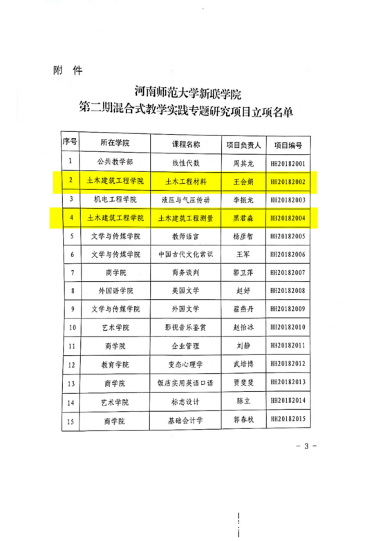 河南师范大学新联学院第二期混合式教学实践研究专题,学院《土木工程材料》、《土木建筑工程测量》2个项目立项