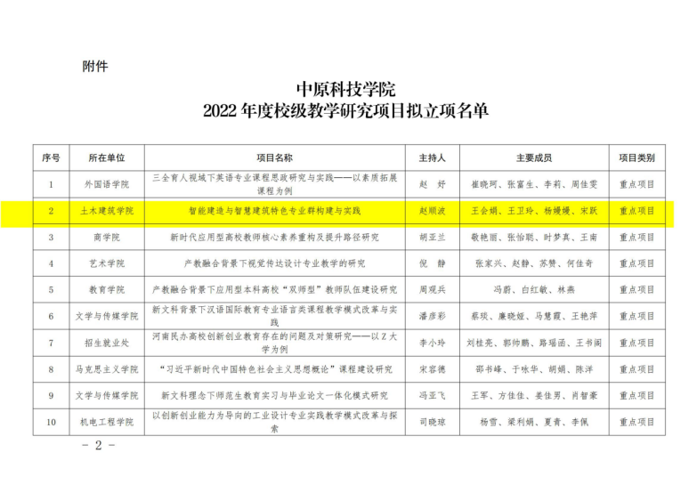2022年校级教学研究项目,学院《智能建造与智慧建筑特色专业群构建与实践》等17个项目立项
