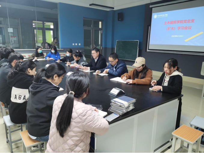 2023年4月23日下午,土木建筑学院党总支组织(扩大)学习会议,土木建筑学院党总支班子成员及所属各支部书记、支部委员参加会议,会议由土木建筑学院党总支书记郭彦华主持。