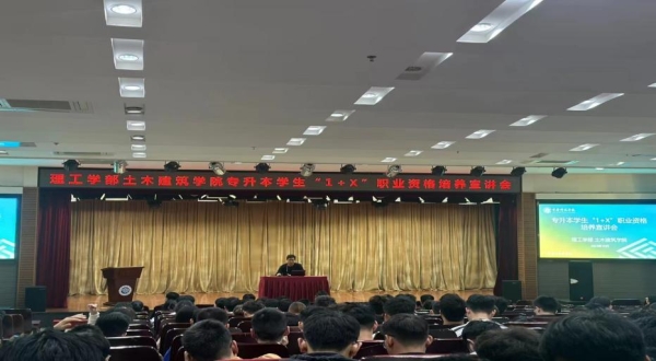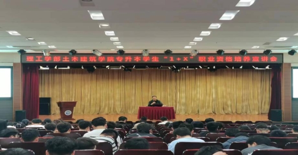 为了使学生更好了解未来就业前景,做好职业规划,提升学习动力和就业竞争力。2023年10月12日,理工学部(郑州校区)土木建筑学院在学术报告厅举办专升本学生“1+X”职业资格培养宣讲会。学院2023级工程造价(专升本)和土木工程(专升本)专业的师生共同参加会议。会议由学院辅导员宋静静老师主持,闪晨晨老师和高晴老师进行讲解。